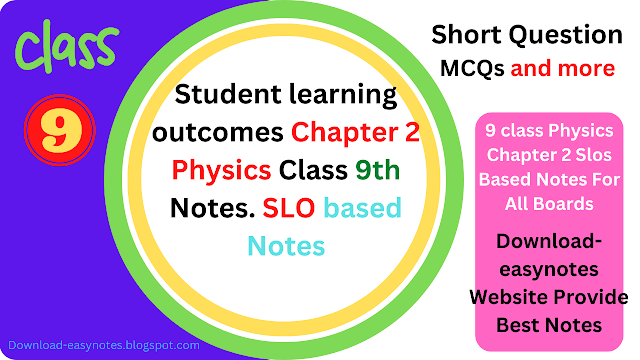 physics class 9 notes Chapter 2 SLO's Notes. These (slo's) student learning outcomes Notes Provide For prepare Exam And test. Class 9 Physics Chapter 2 Kinematics Slos based question and answer provide for the hardworking student. physics Chapter 2 learning outcomes examples and learning objectives and learning outcomes. slo education is very important to prepare for the final exam and gain the maximum number on the board exam.